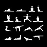 Simple Stylized Yoga Poses Icon Set Stick Figures In Yoga Asanas