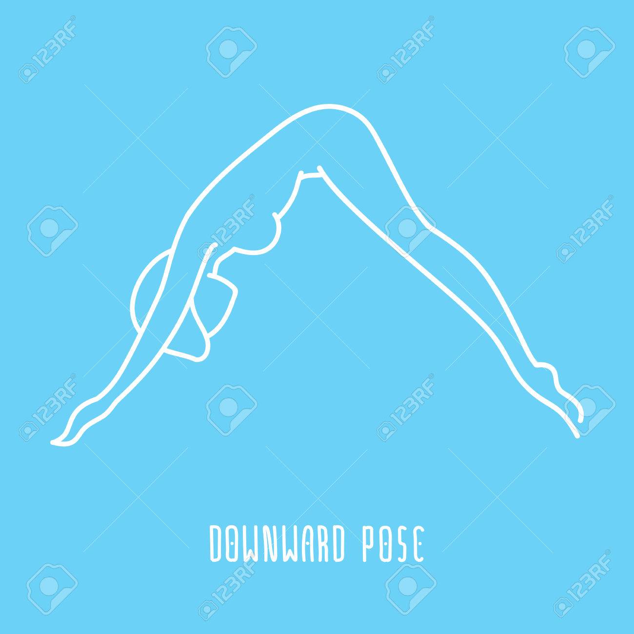 Yoga Pose Flat Line Icon Simple Sign Of Woman In Downward Dog
