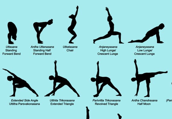 68 Vector Yoga Poses Each With Its English And Sanskrit Names Etsy