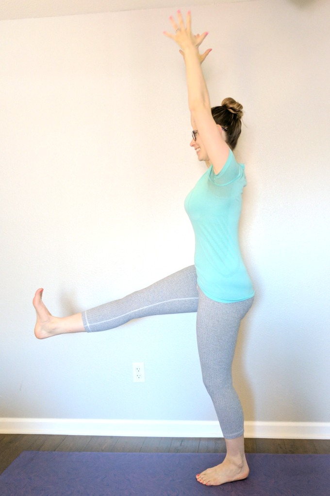 Standing Rising One Legged Chin To Knee Pose Prep Mr Yoga Is
