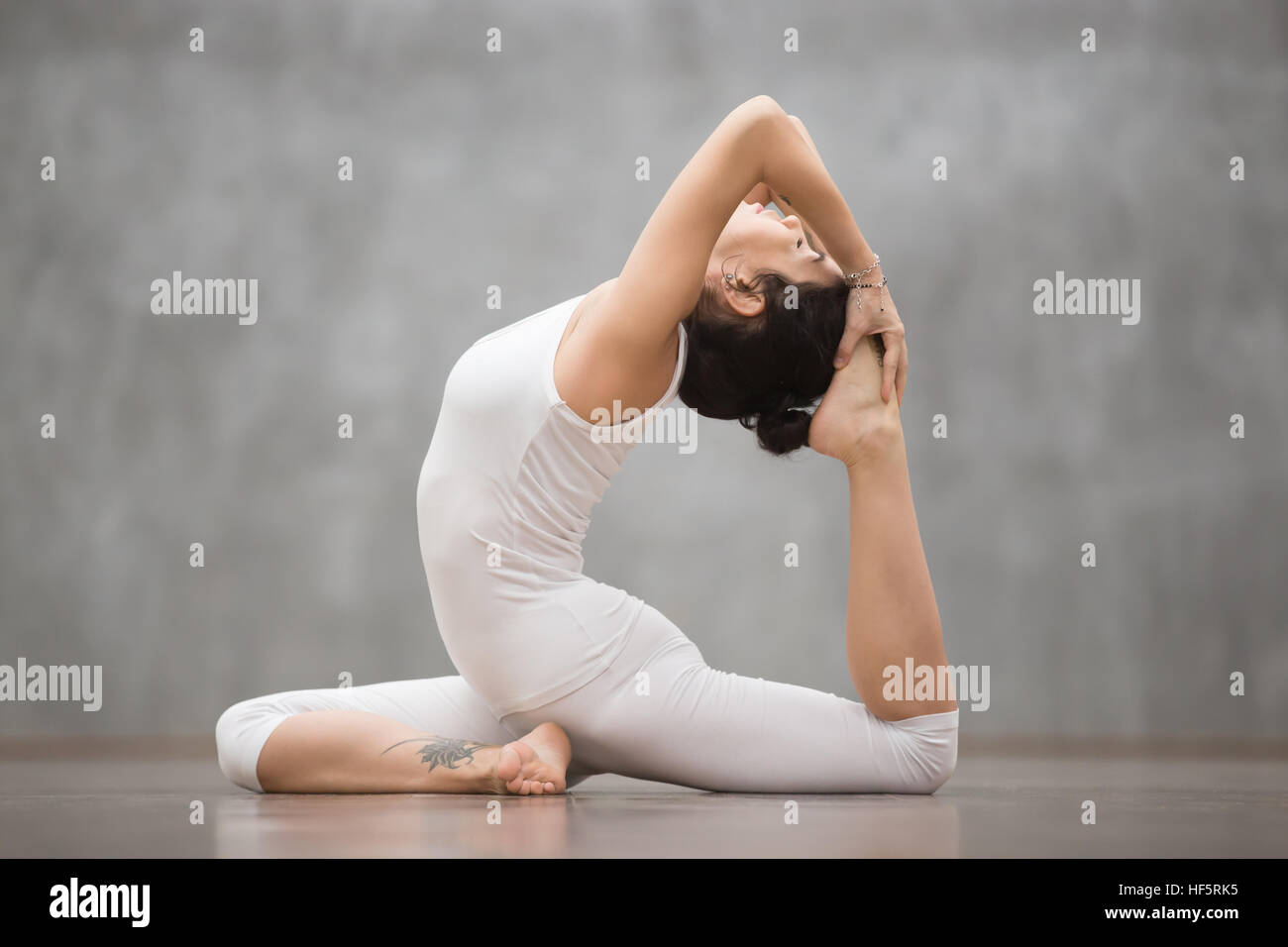 Sporty Girl On White Background Doing Back Bend Eka Pada