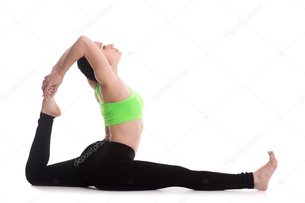 Pretty Woman In One Legged King Pigeon Yoga Pose Isolated On