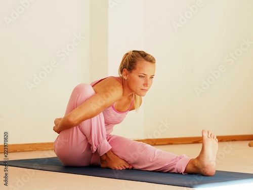 Beautiful Young Fit Woman In Sportswear Doing Yoga Pose In Gym One