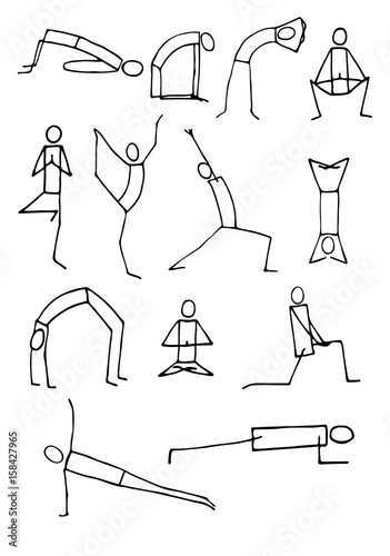 Set Of Hand Drawn Stickman Yoga Poses Stock Image And Royalty Free