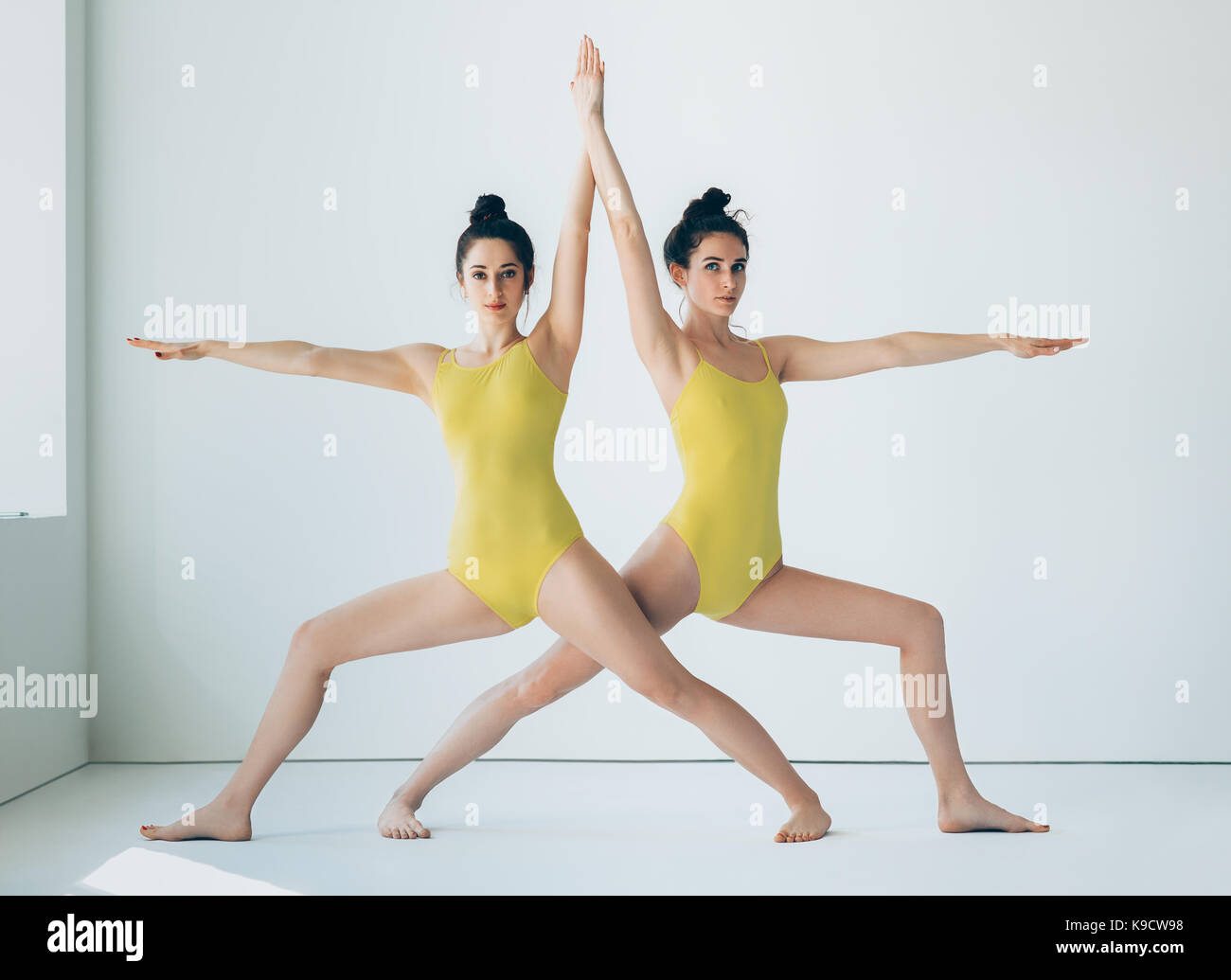 Two Young Women Practicing Yoga Poses And Asanas Partner Yoga Stock