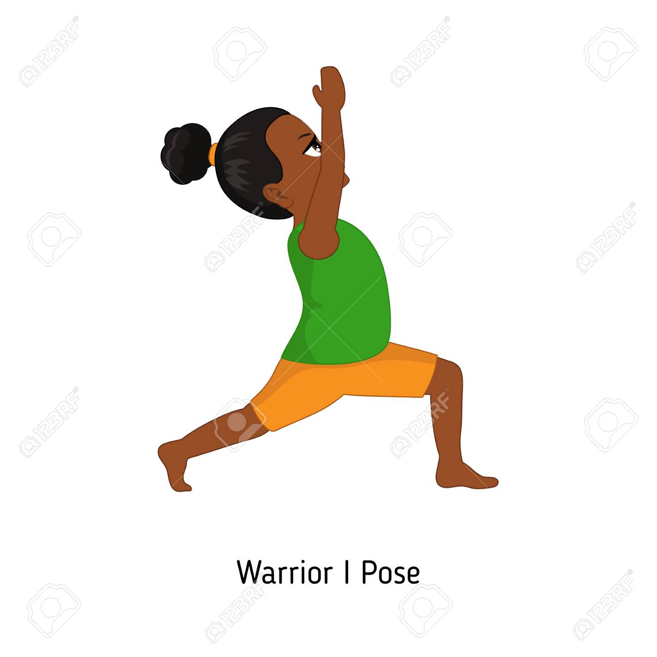 Child Doing Yoga Warrior One Yoga Pose Cartoon Style Illustration